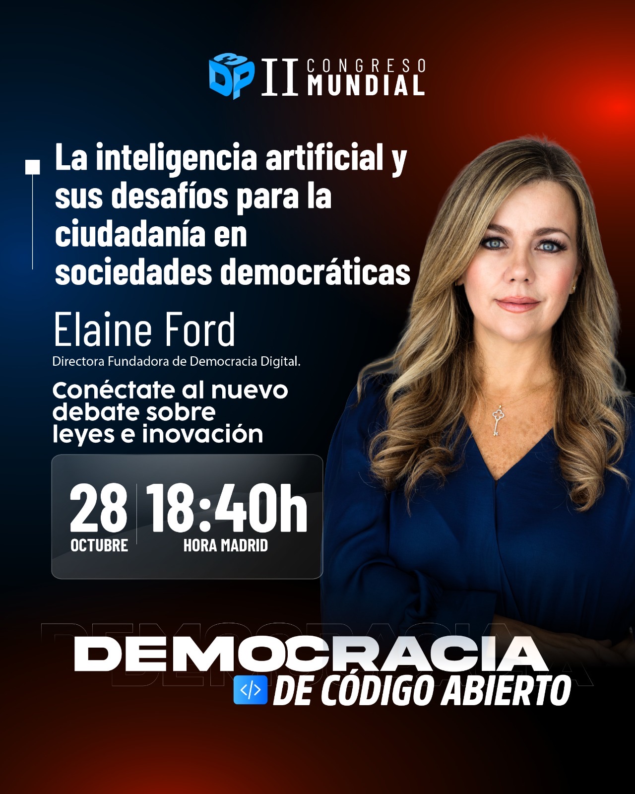 Elaine Ford es expositora del II Congreso Mundial Democracia Digital Directa y Participativa