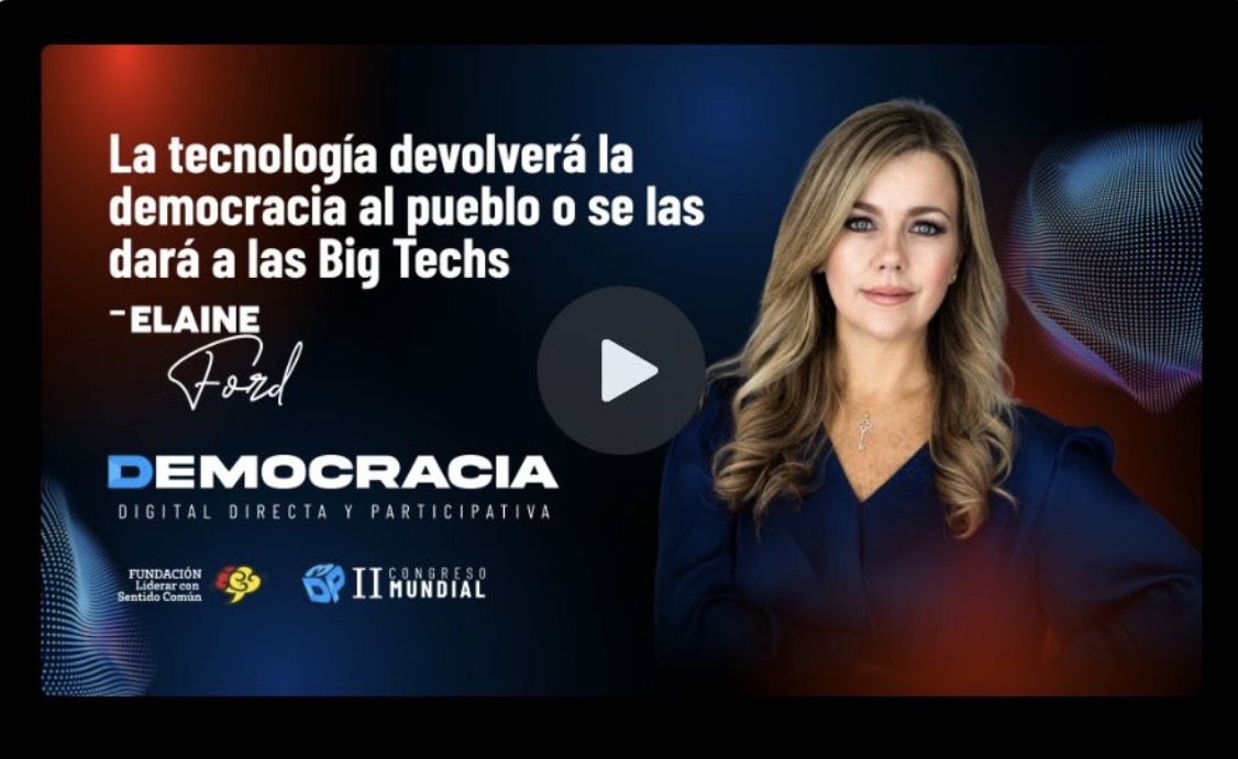 “La tecnología devolverá la democracia al pueblo o se las dará a las Big Tech” es el gran tema actual del Podcast realizado a Elaine Ford, directora fundadora del Democracia Digital, bajo la conducción de Begoña Fernández de la Fundación Liderar con Sentido Común de España. Dicha actividad se enmarcó en el II Congreso Mundial Democracia Digital Directa y Participativa (3DP) organizado por la misma Fundación presidida por Antonio Sola.